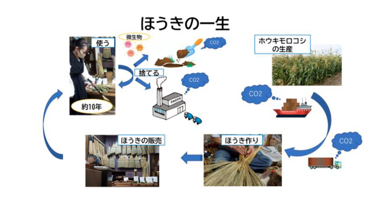 教材開発にあたり行った事前調査では、伝統的な箒(ほうき)は天然素材から作られ、製造から廃棄までのライフサイクル全体でほとんどCO2を排出しないこと、日常生活で箒を使うことは日本の伝統文化・技術の継承・保存にもつながること、さらに音を出さない、手軽に使えるなど現代のライフスタイルにも合うなどのメリットがあることがわかりました。 一方、掃除機は、強い吸引力があり自動的に機械がごみを集めるため、掃除にかかる時間が短縮できる、掃除する人の負担が軽減できるなどのメリットがあります。
